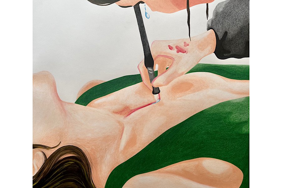 publicly. This negotiation can be frustrating, especially when it creates a distance between the work as it first emerges and the work as it is ultimately shown. That said, I try not to let this limitation define or restrict my practice. Instead, it has pushed me to find more subtle, indirect ways of embedding desire, intimacy, and bodily sensation into the work. Rather than being overt, these elements become quieter and more ambiguous—woven into gestures, atmospheres, and relationships within the image.